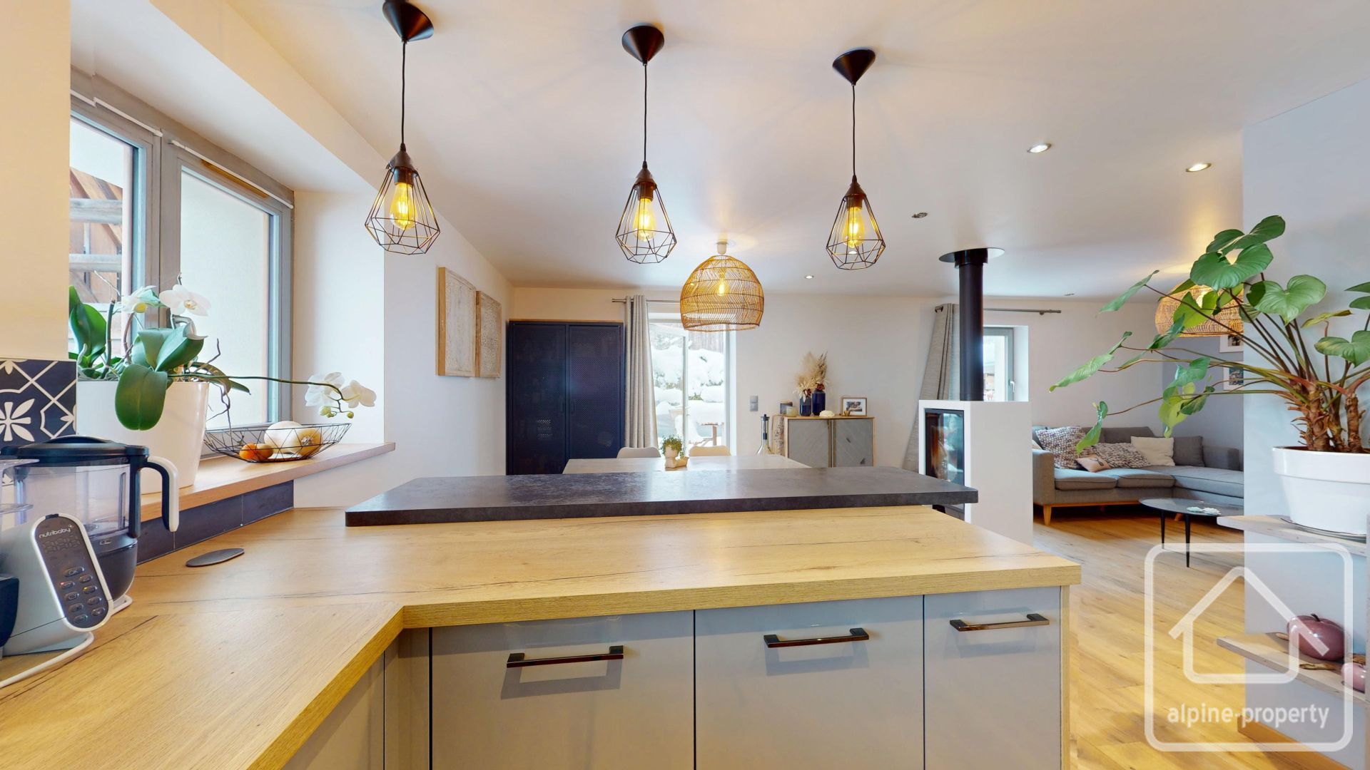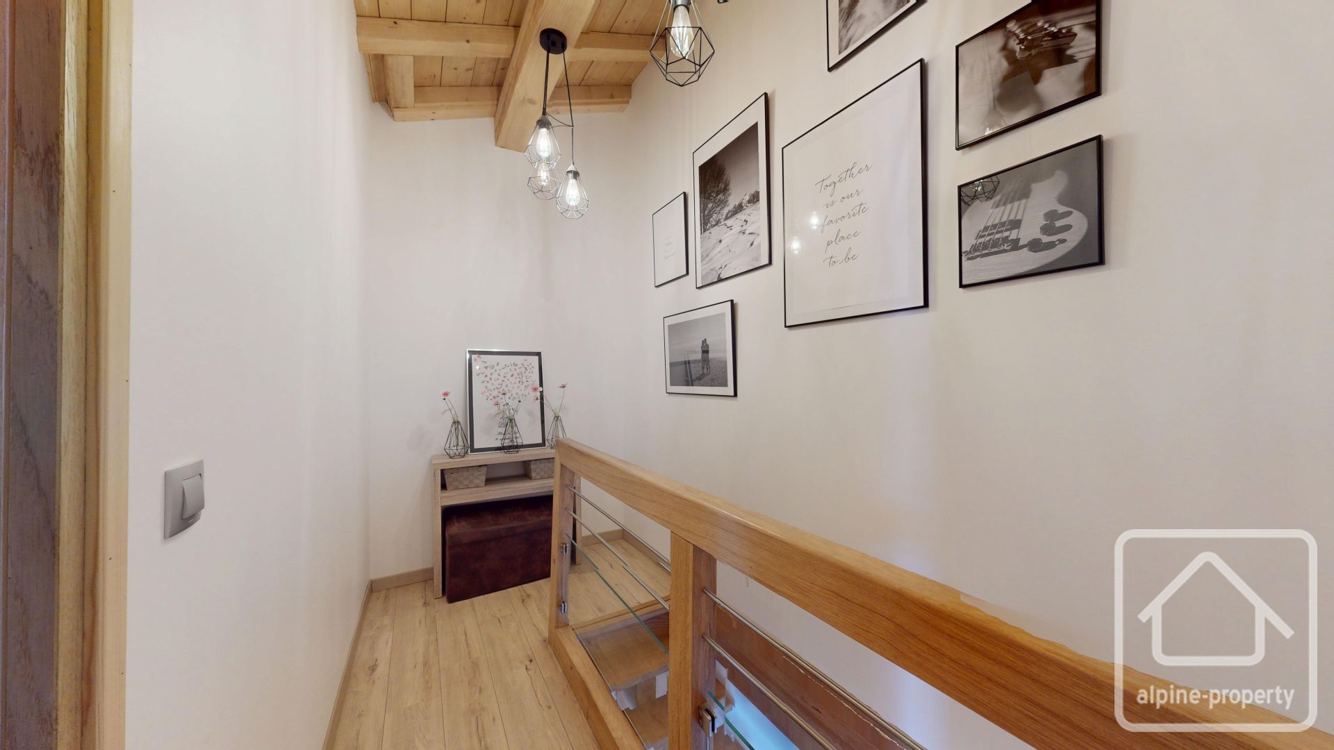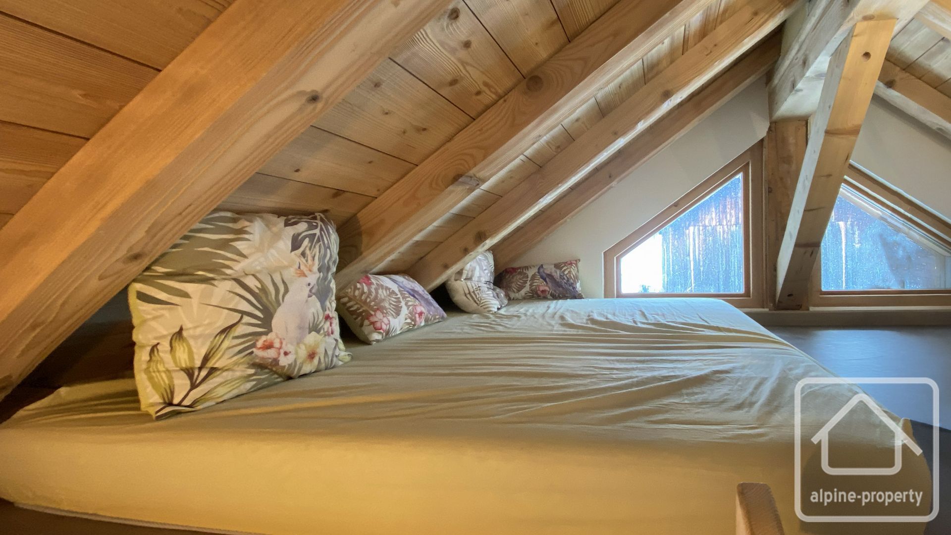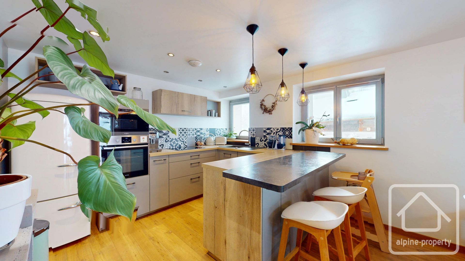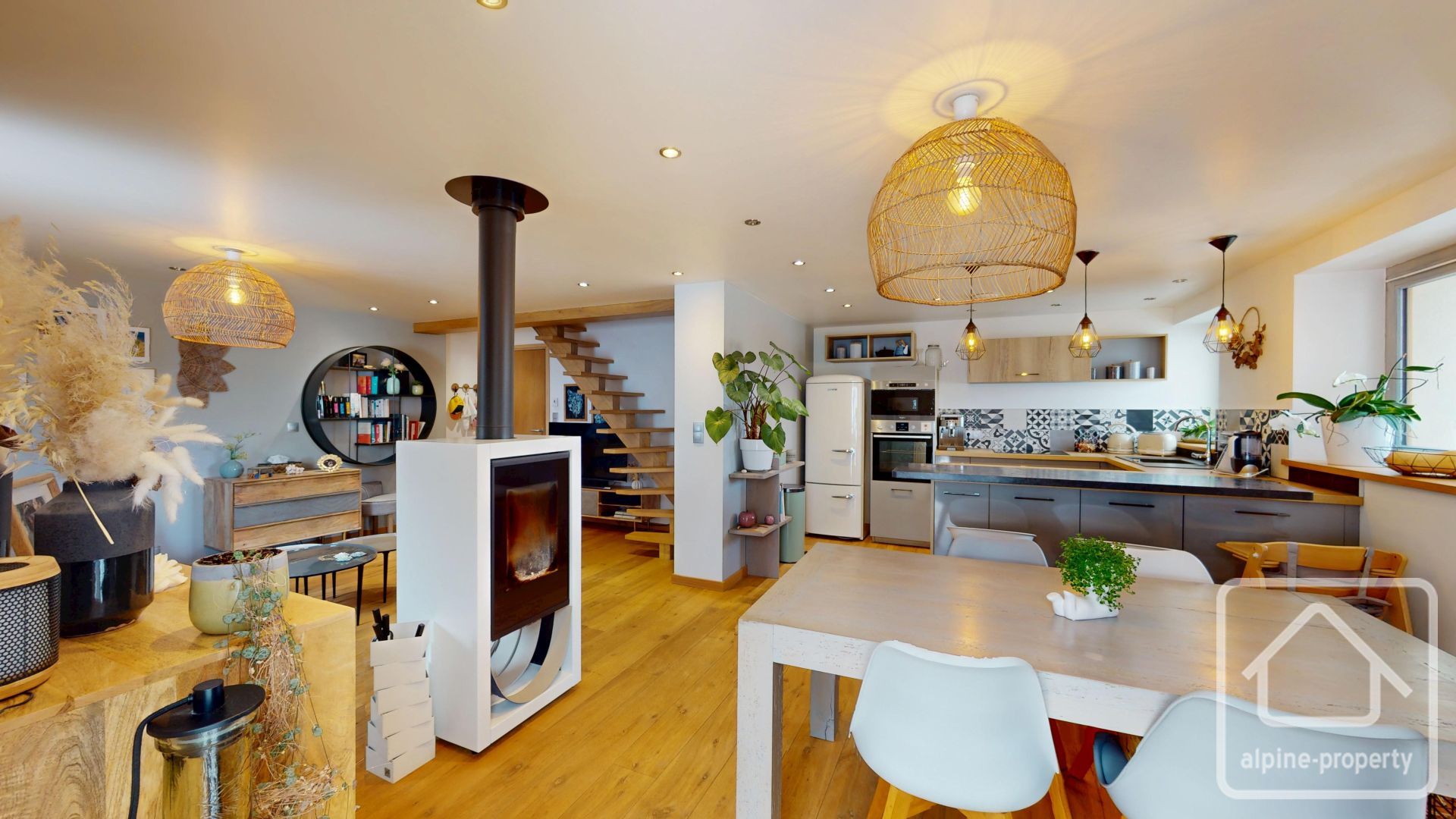 The property was sold as a shell in 2017, and the interior had a full refit including all wiring, plumbing and layout in 2018, giving it a light and contemporary feel to a high standard. The open-plan living area and 49m2 south-facing private terrace are a huge attraction, and the high ceilings with exposed wooden frameworks on the upper level combine alpine charm with modern design.