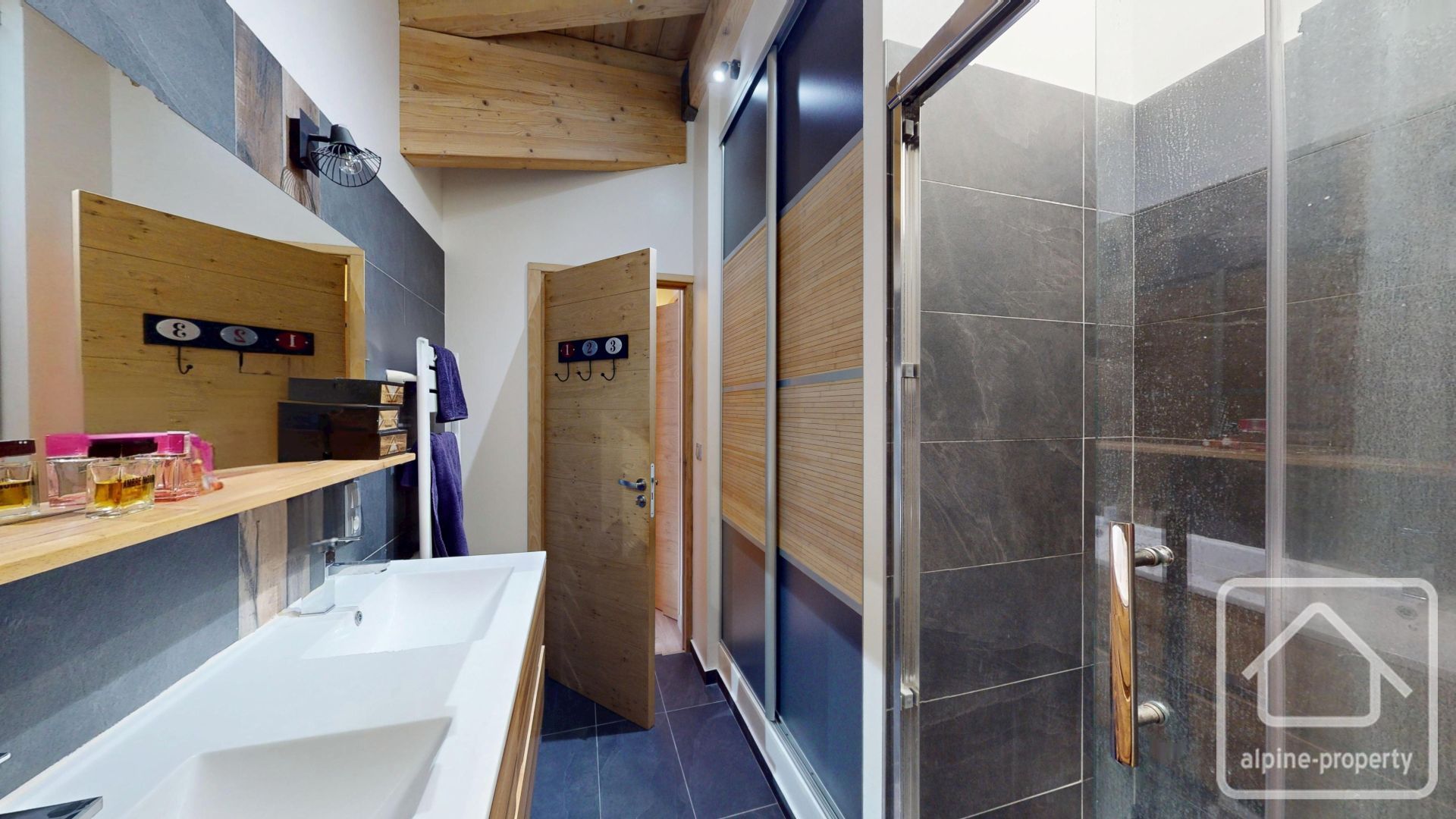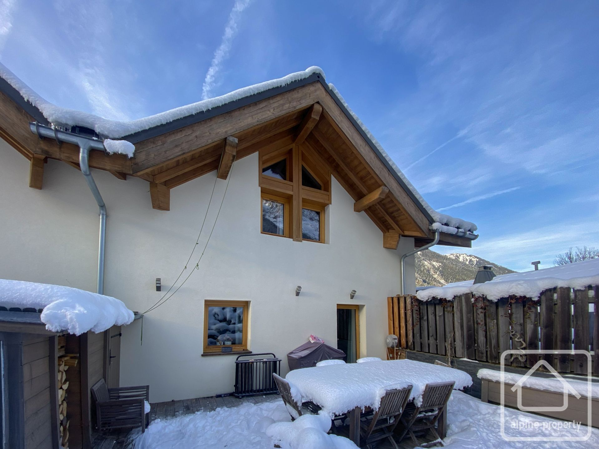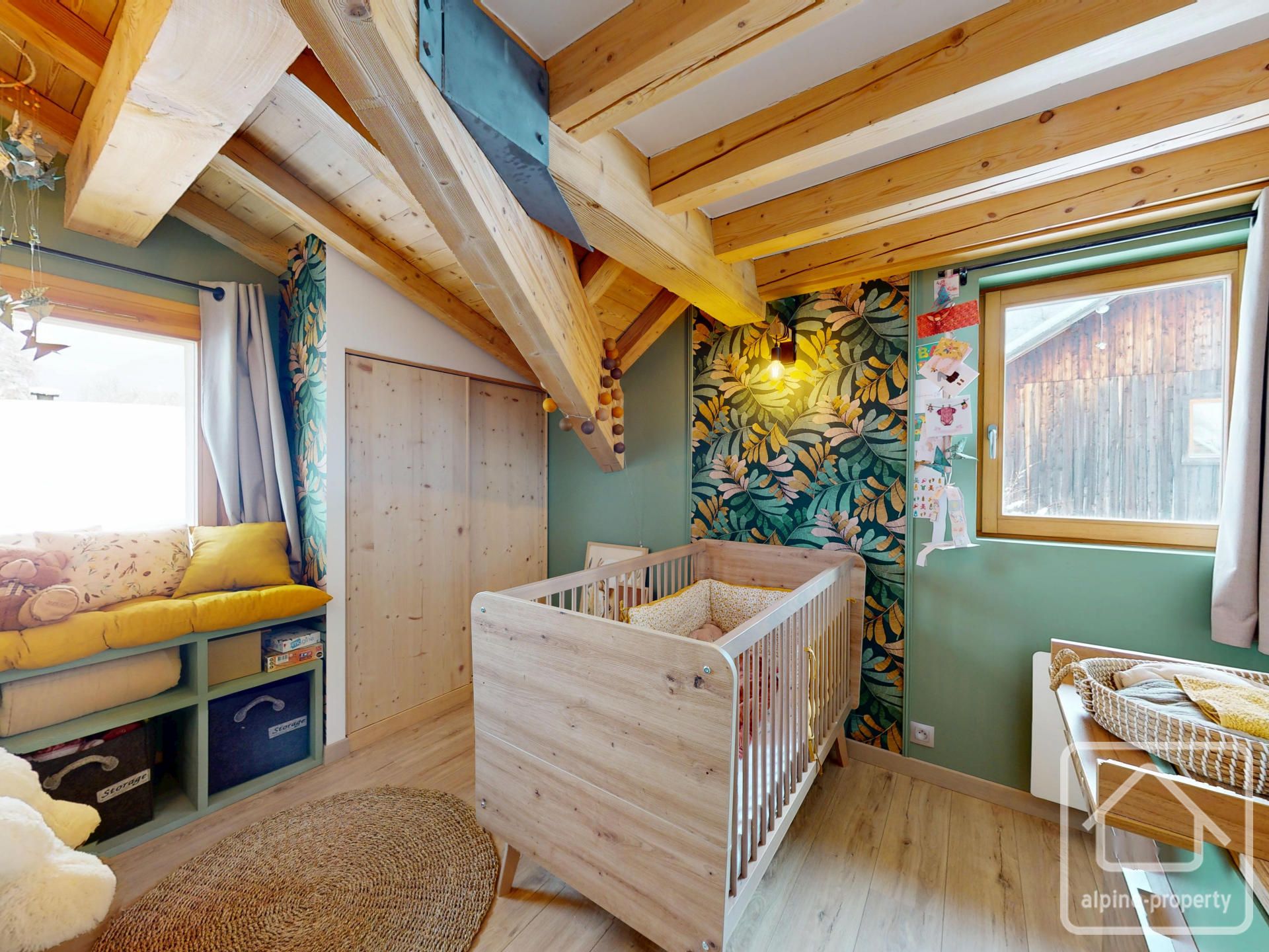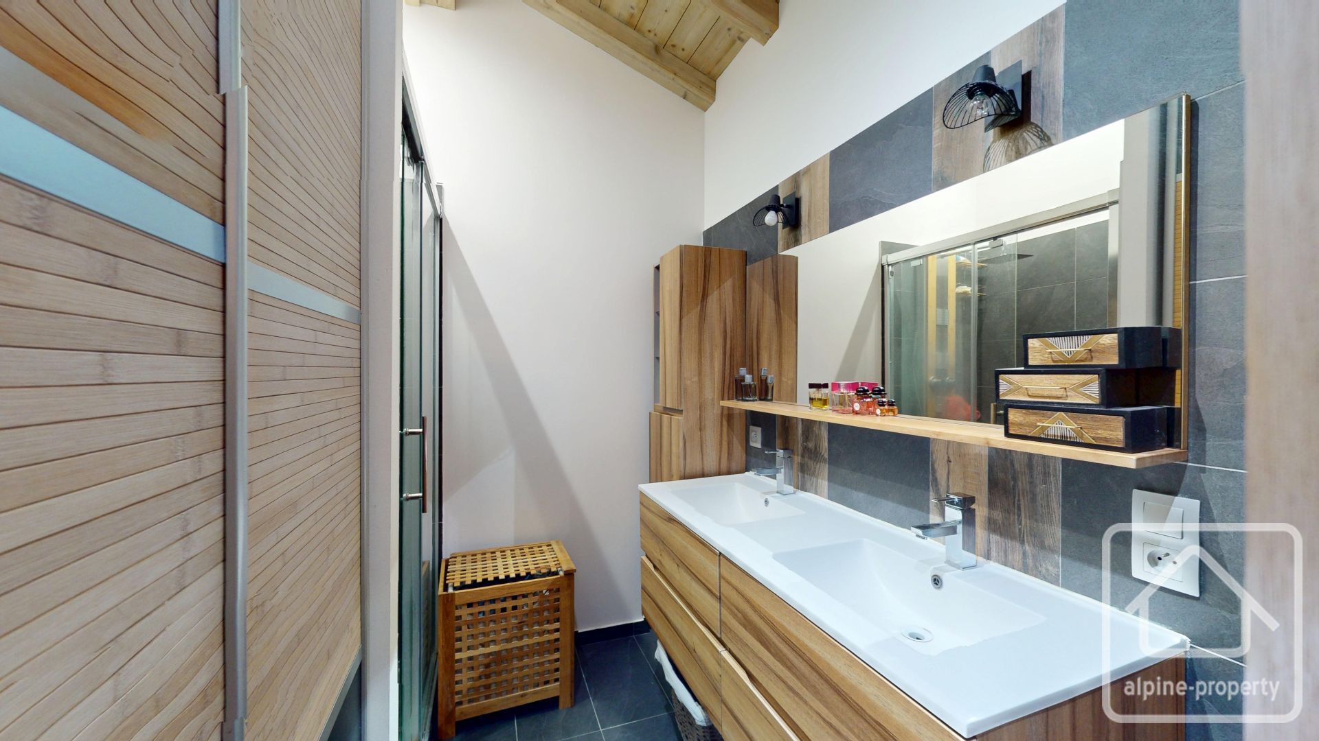 The property was sold as a shell in 2017, and the interior had a full refit including all wiring, plumbing and layout in 2018, giving it a light and contemporary feel to a high standard. The open-plan living area and 49m2 south-facing private terrace are a huge attraction, and the high ceilings with exposed wooden frameworks on the upper level combine alpine charm with modern design.