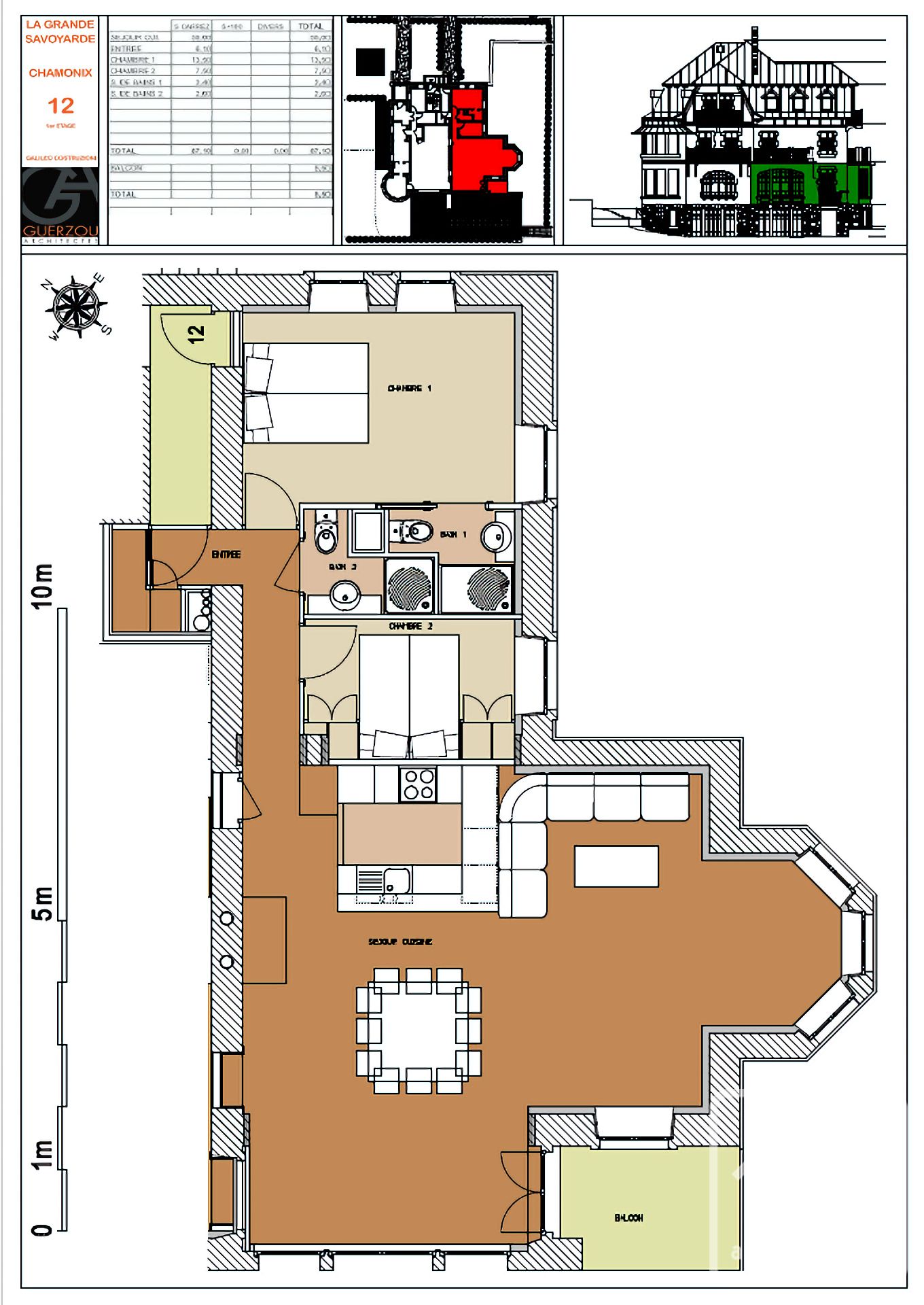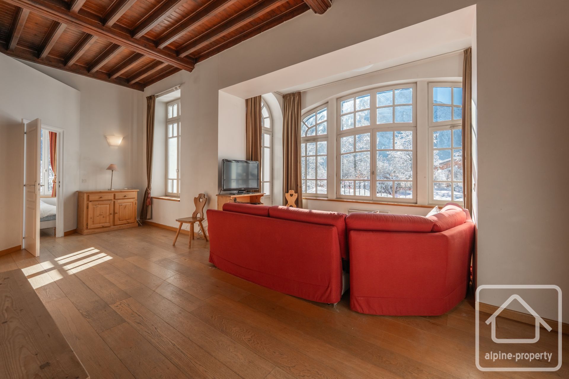 Delightful south-east facing sunny three bed apartment in a historic residence, ideal high yield rental investment or primary residence, 5 minutes’ walk to Chamonix high street, one hour from Geneva airport.