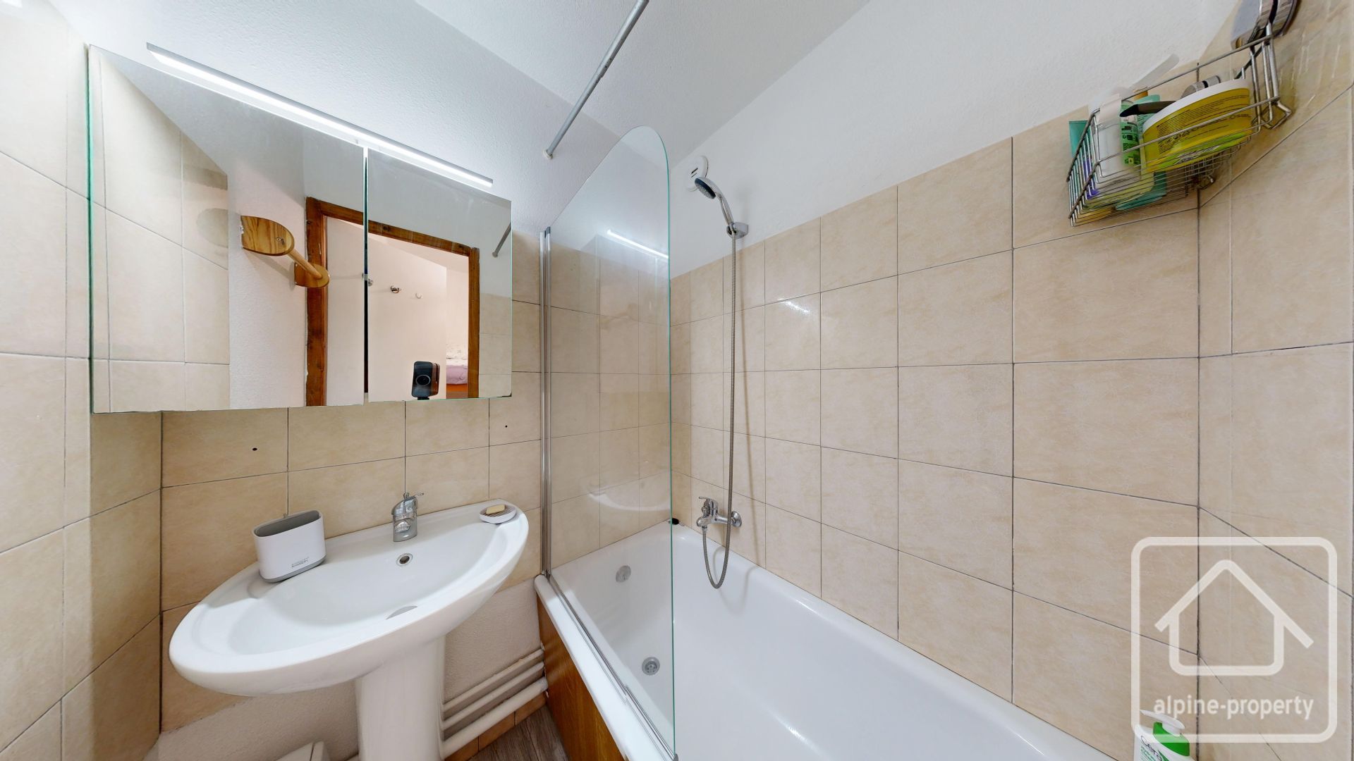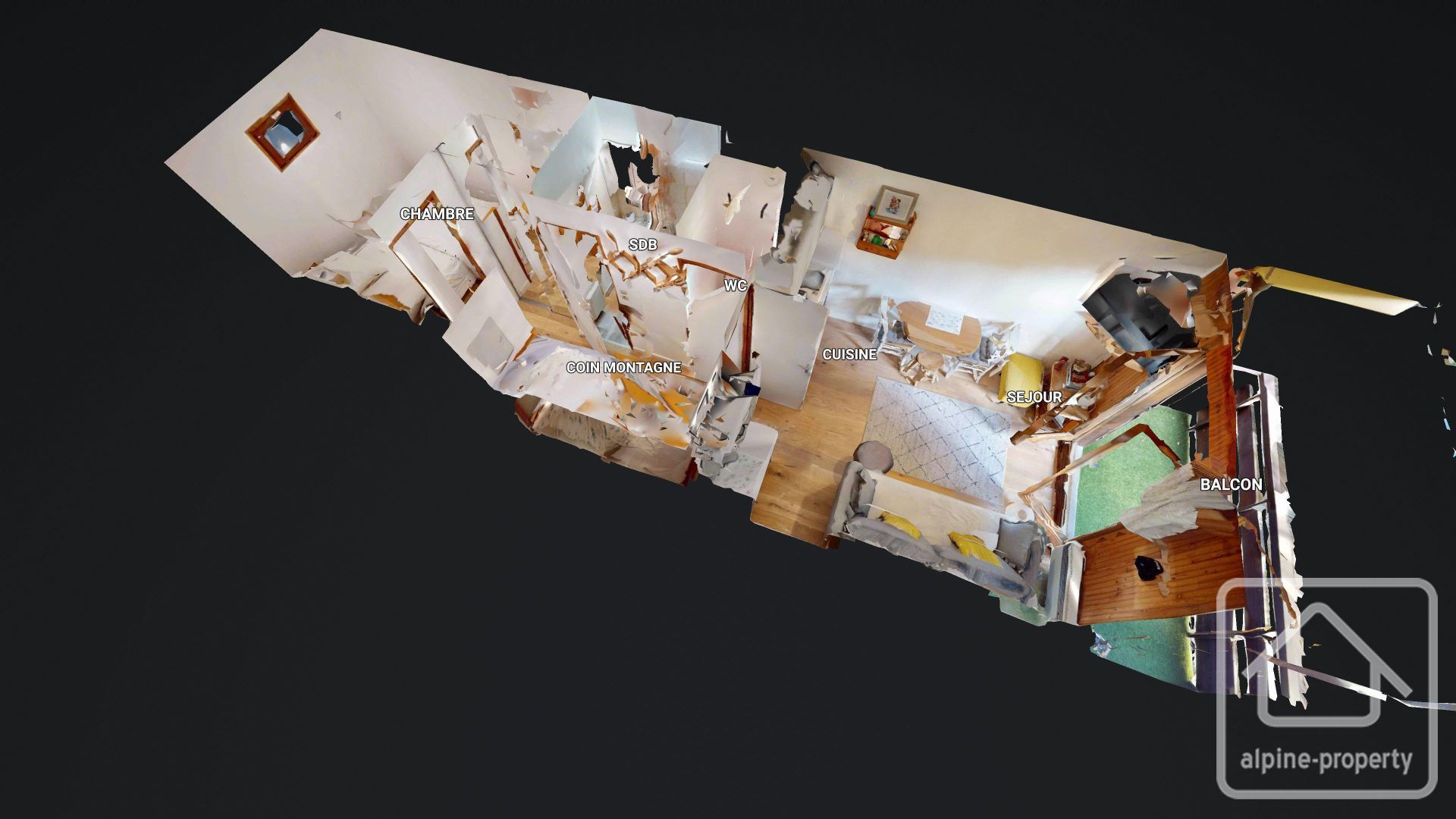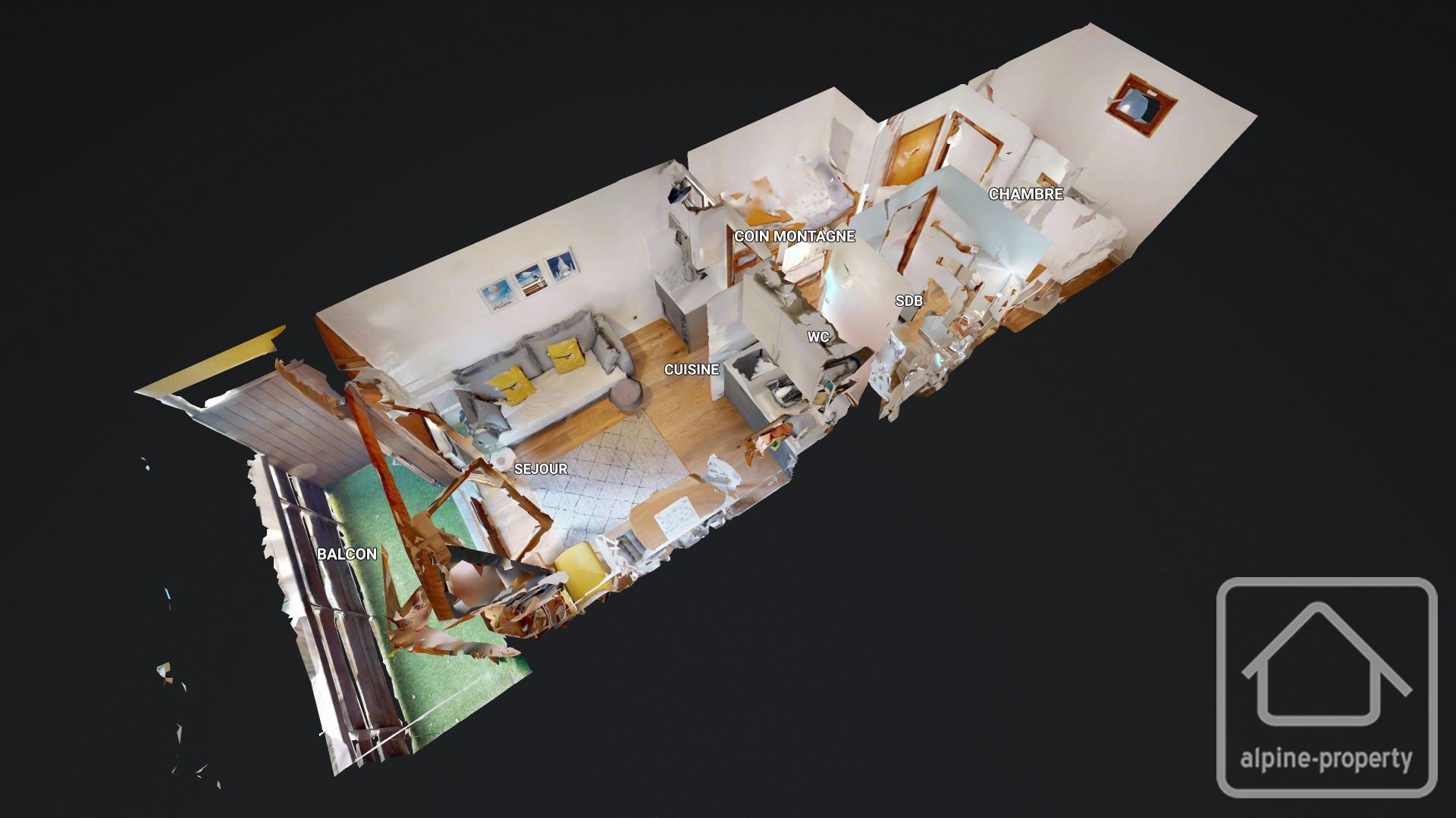 The apartment is in excellent condition throughout and compromises an entrance with bunk beds in the “coin montagne” sleeping area, open plan living/dining area with kitchenette and balcony with views of the village, a double bedroom, a bathroom and a separate toilet.