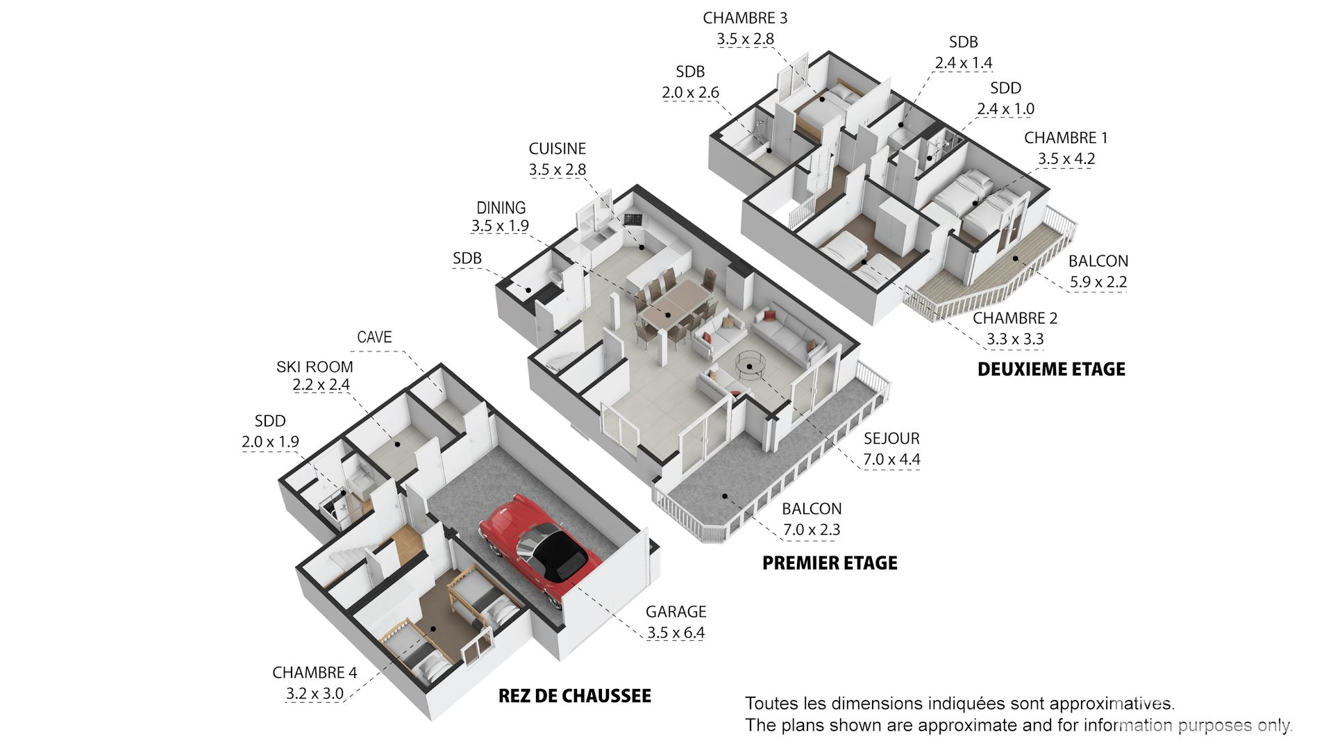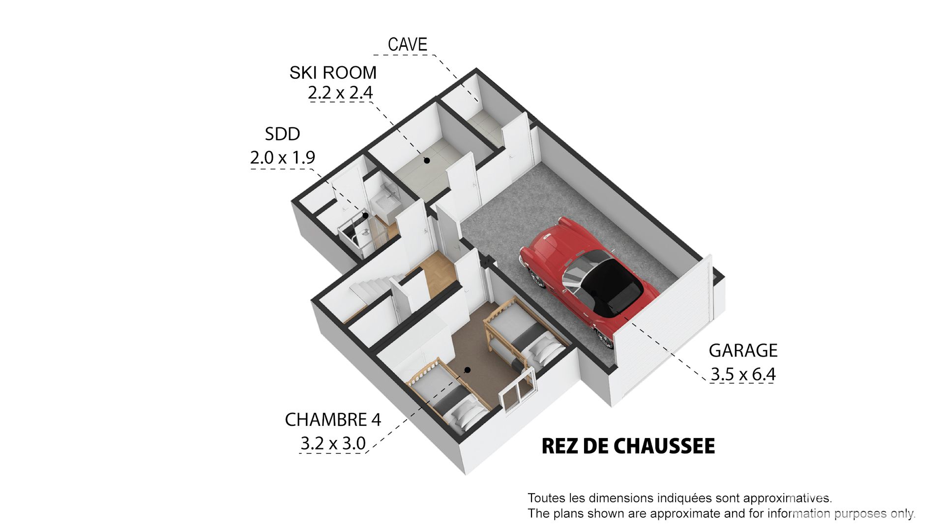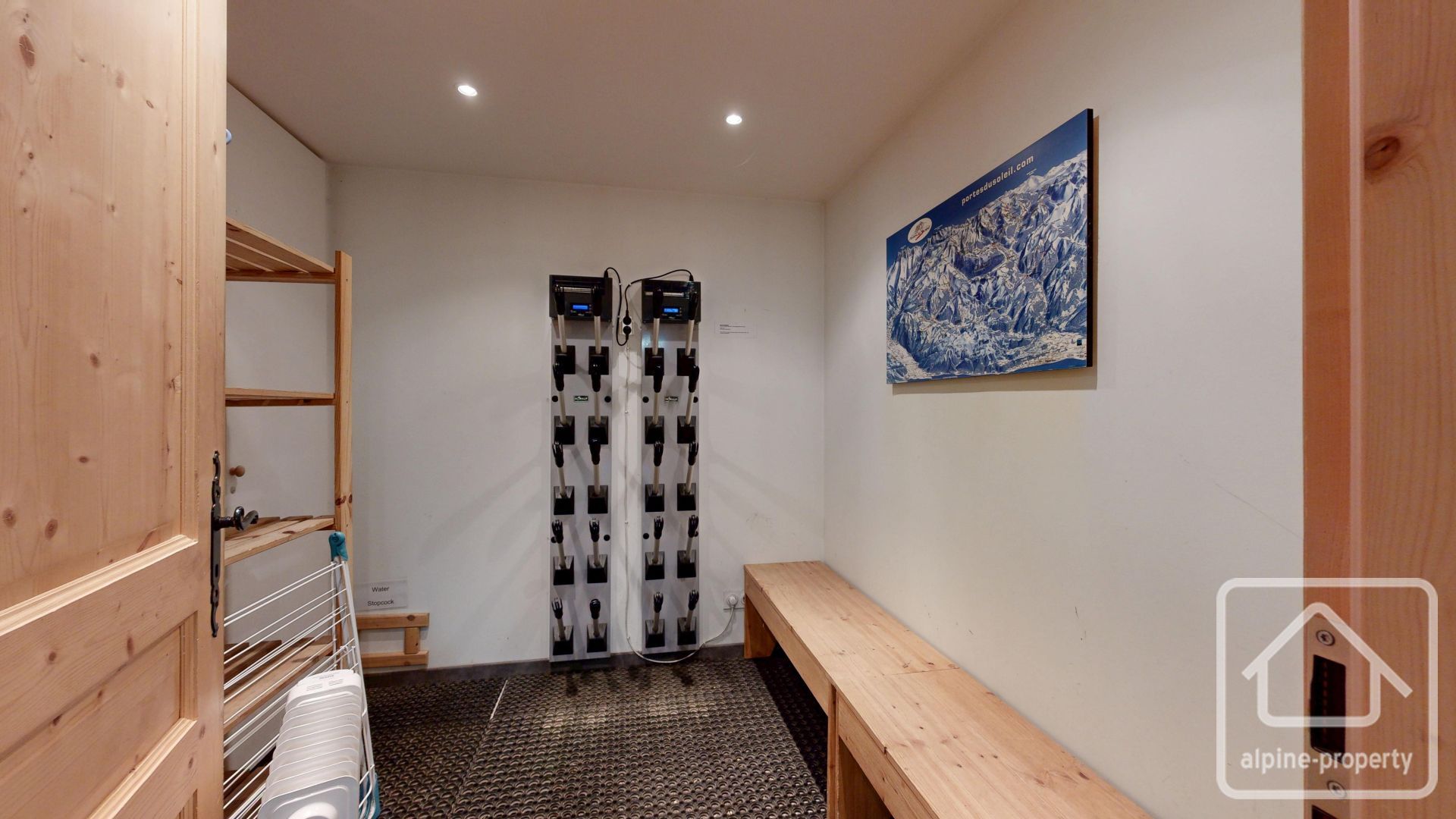 On the lower ground floor: Bedroom, shower room, under stairs storage, ski boot room with boot warmers, garage and storage room.