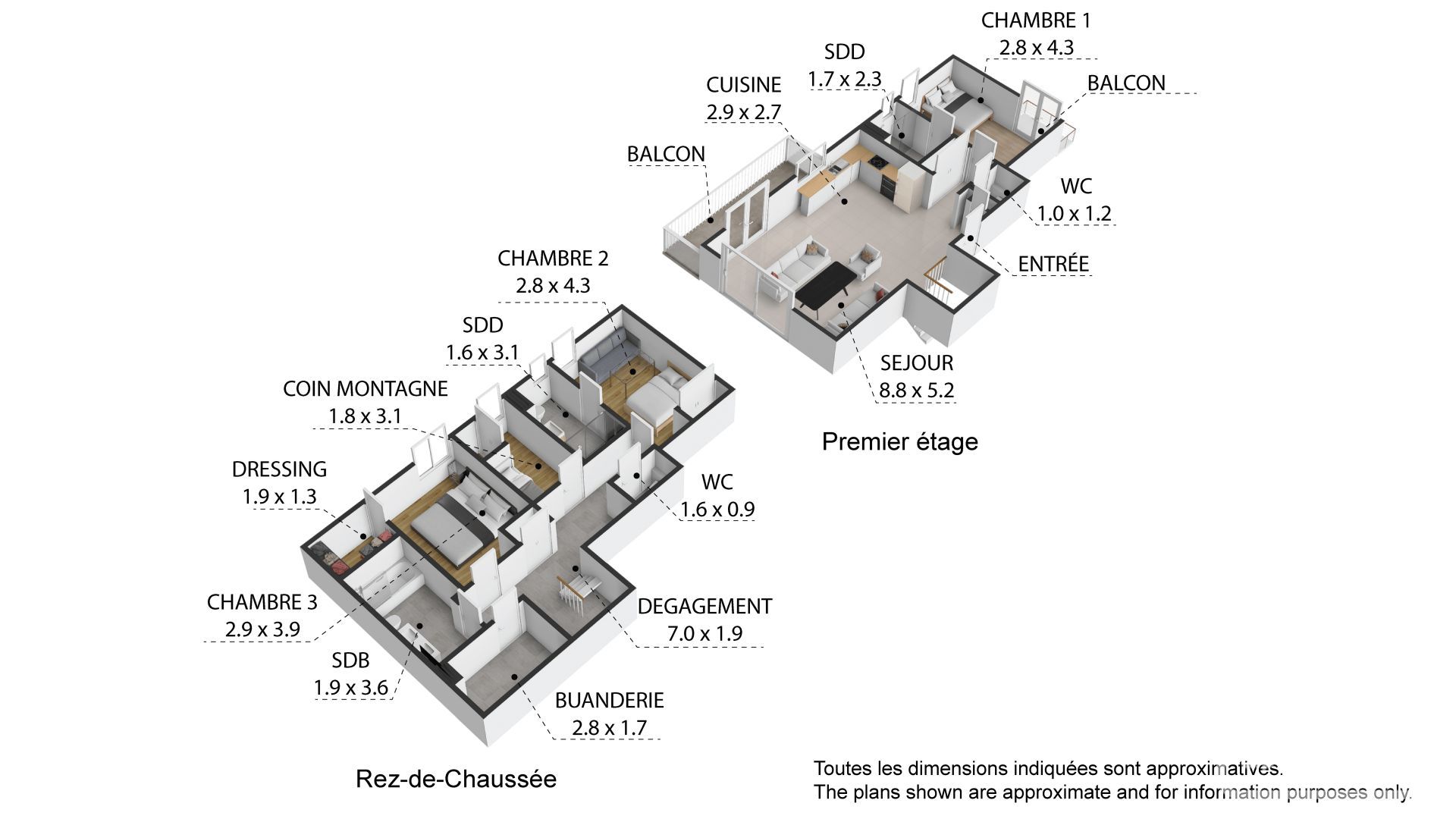 Set within the peaceful alpine village of Essert-Romand, just minutes from Morzine and Les Gets, this beautifully designed three-bedroom duplex apartment, with additional coin montagne, offers the perfect blend of contemporary comfort and mountain charm.