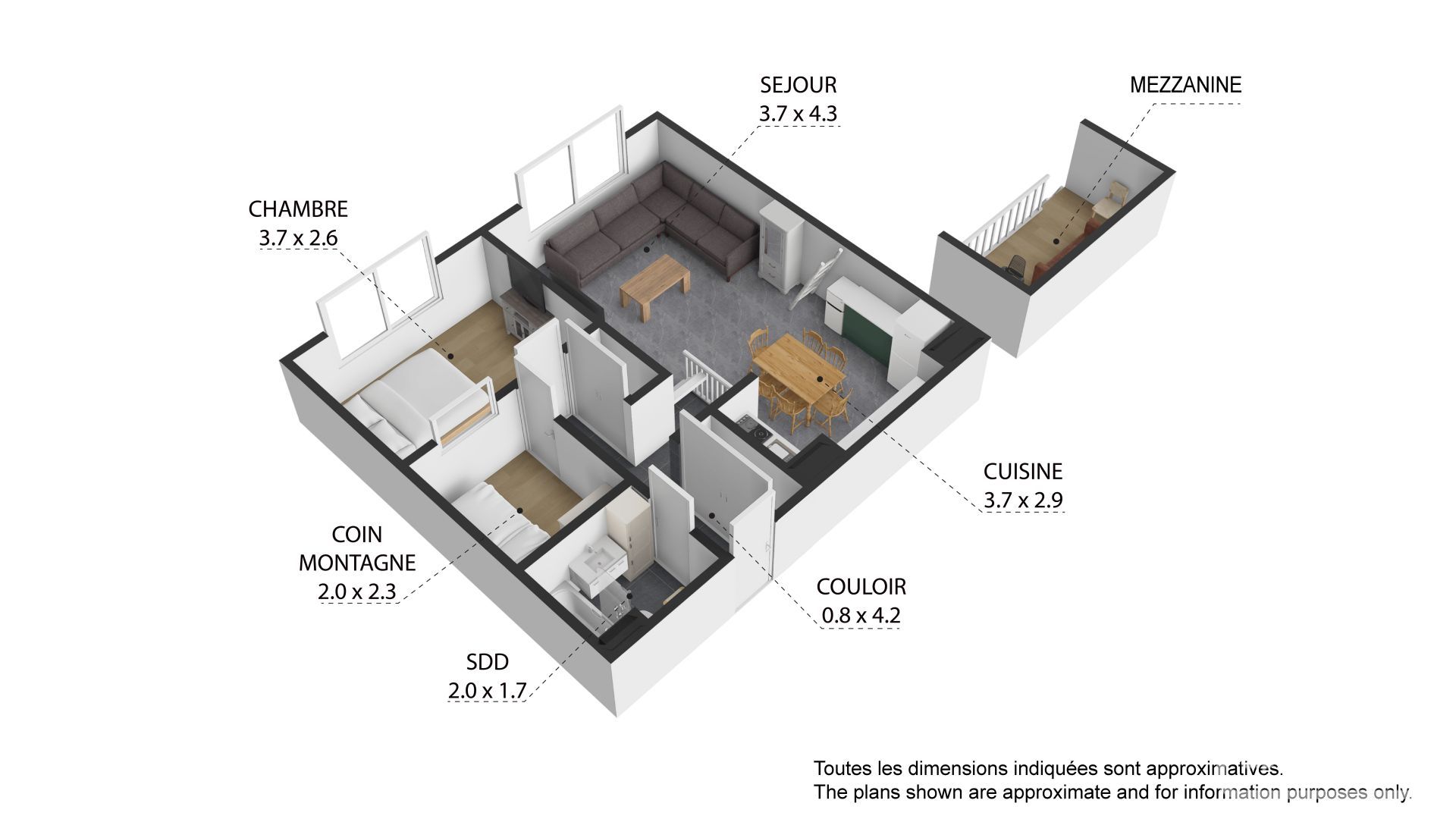 The apartment is sold with a ski locker and a cellar.