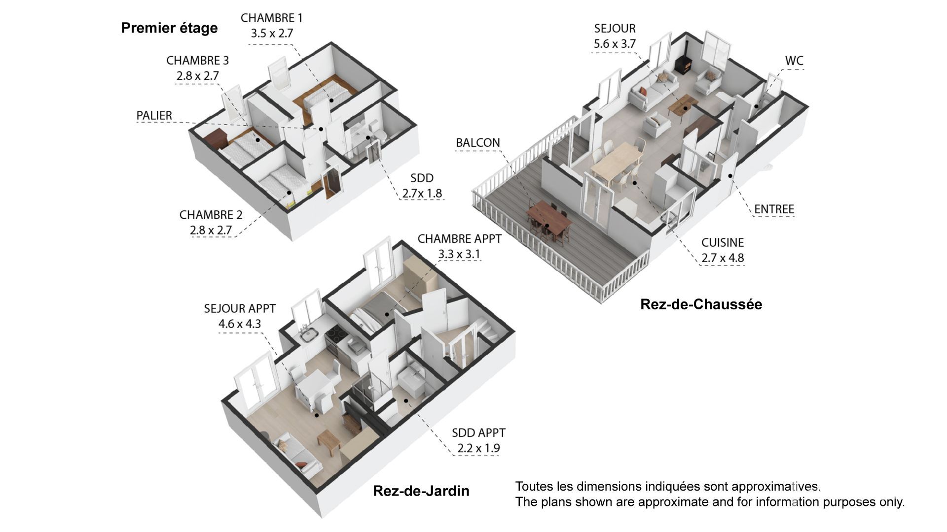 Built over three levels, the chalet is designed for family living. The garden level has been fully converted into a self-contained apartment, ideal for hosting guests or generating rental income. A cleverly designed connecting door allows the layout to be adapted, making it possible to keep a bedroom linked to the main chalet while renting out the studio.
