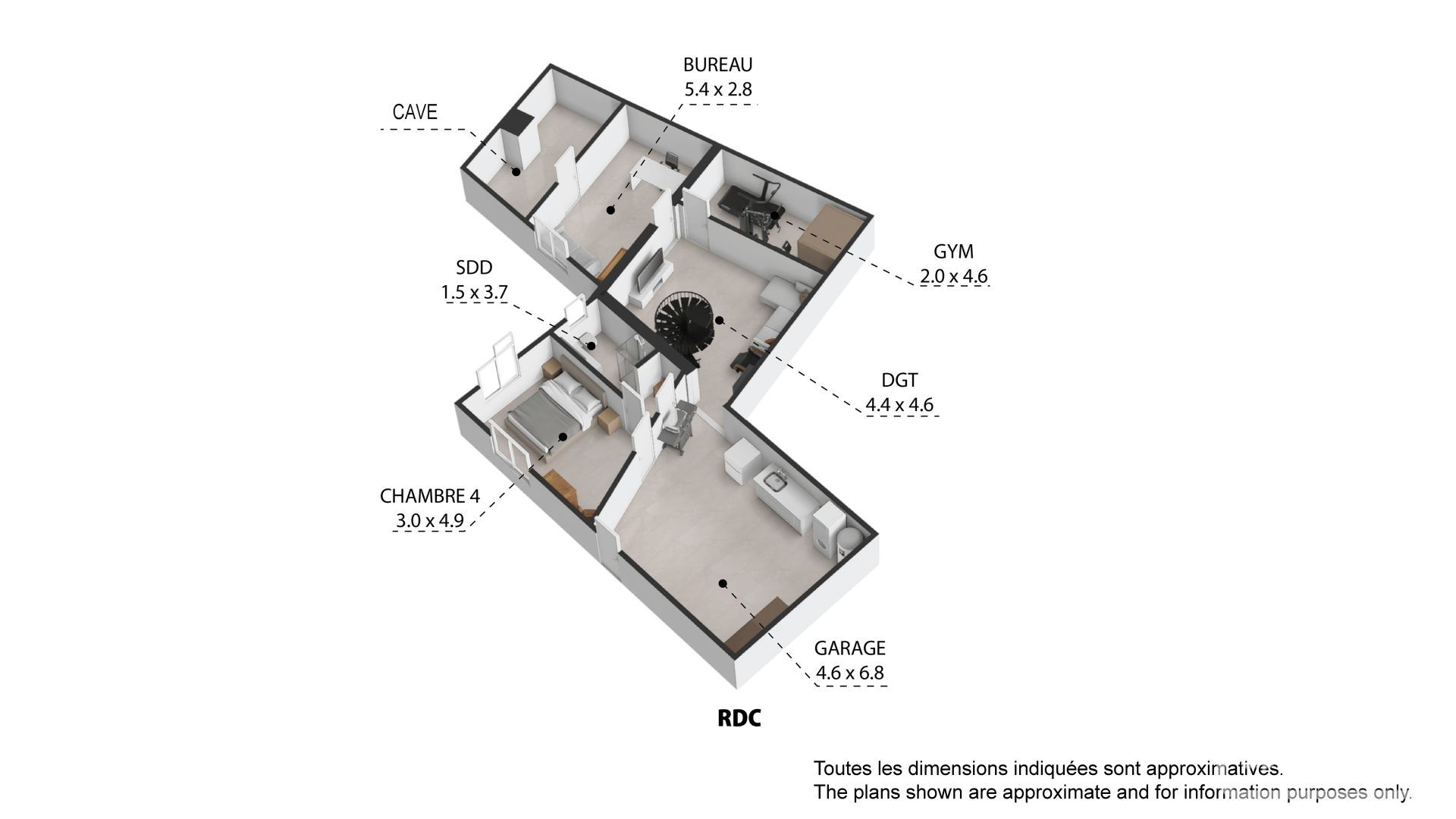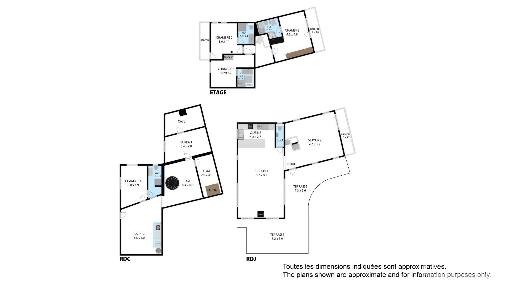 Lower level: chill out zone, gym with sauna, office, storage room, double garage, fourth double bedroom with ensuite.