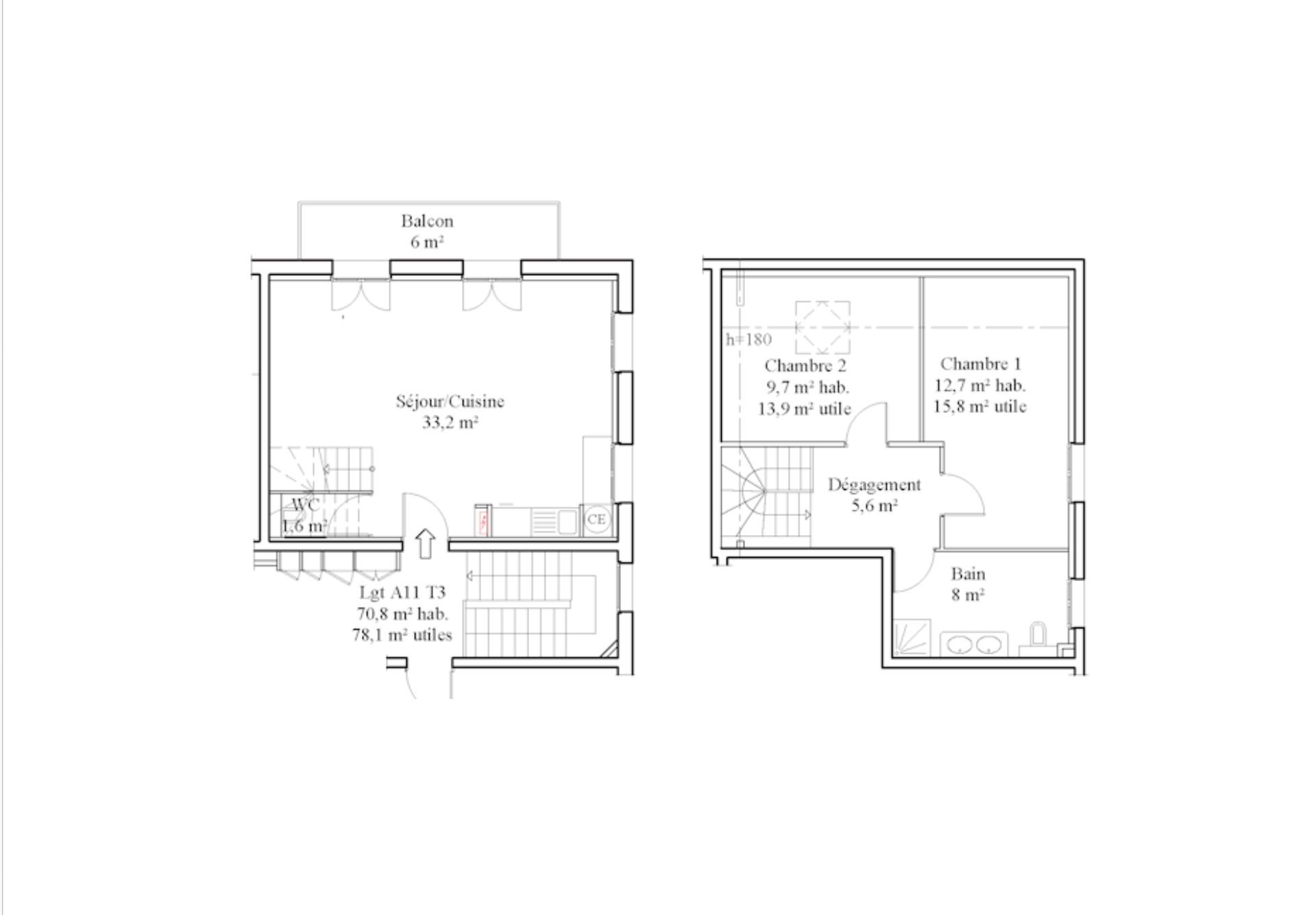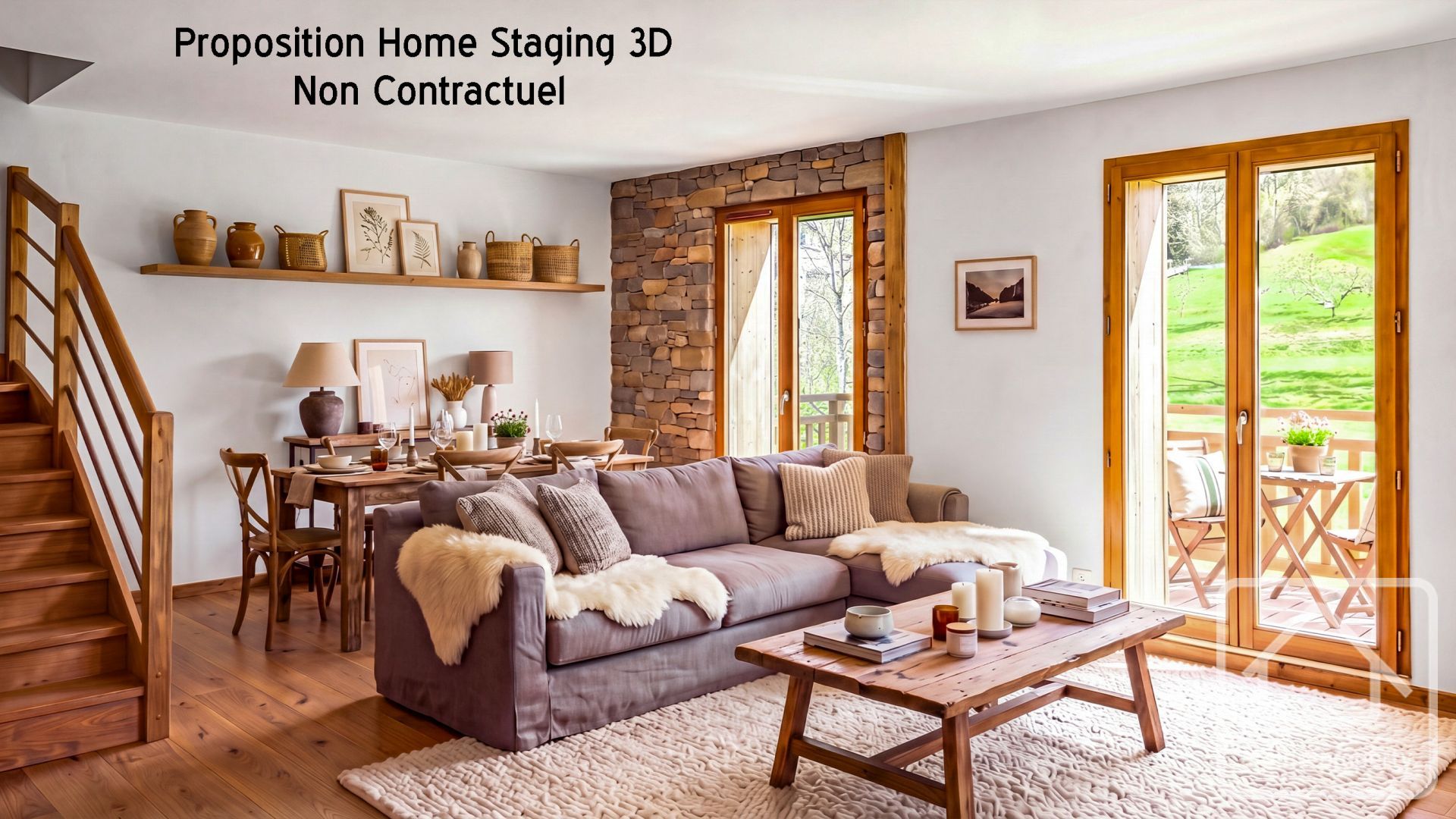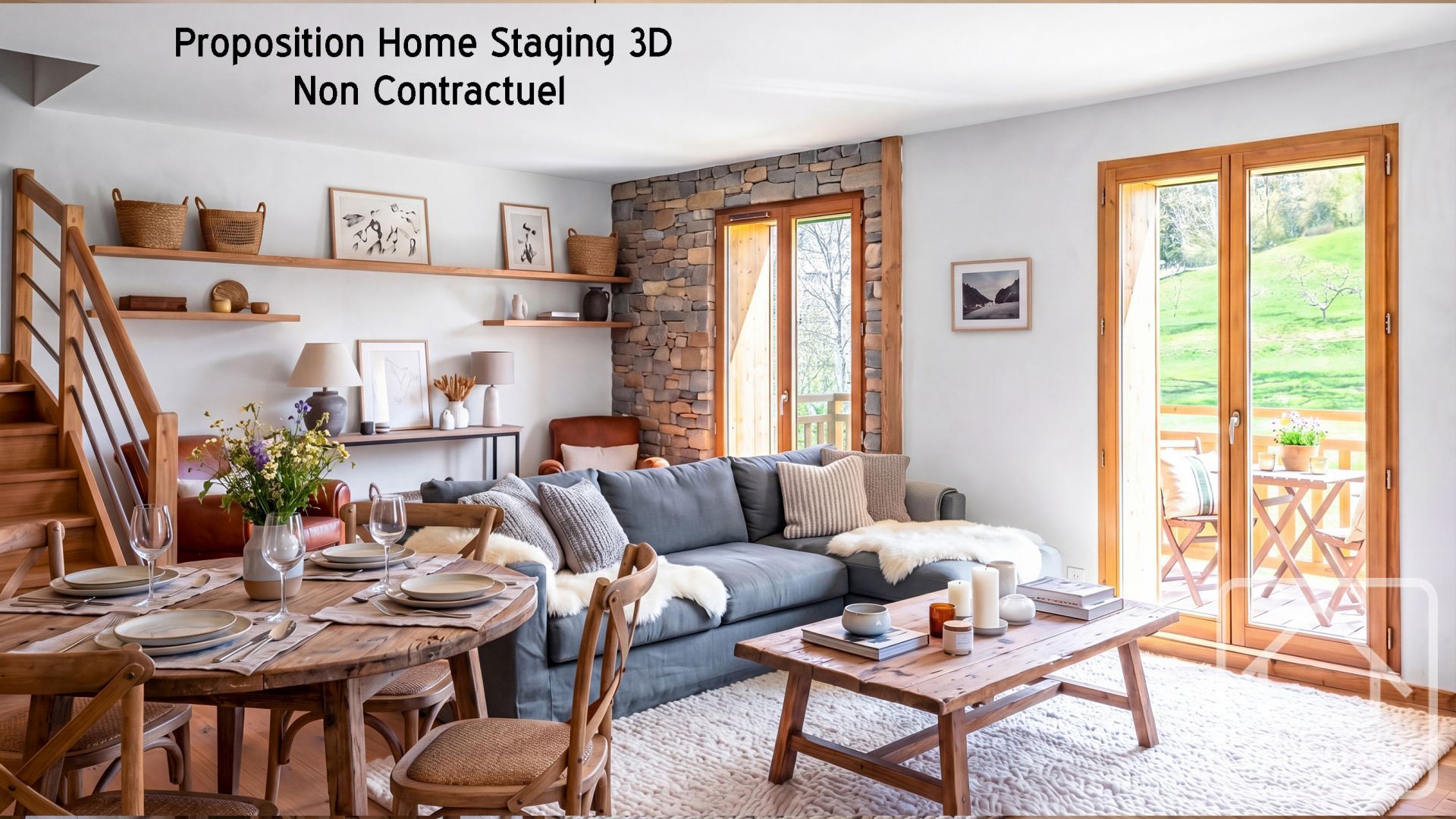 This bright second-floor duplex apartment features a west-facing balcony (6.00 m²) on the first level that enjoys afternoon sun and panoramic views of the Massif des Brasses, with windows on the west and north façades providing natural light.