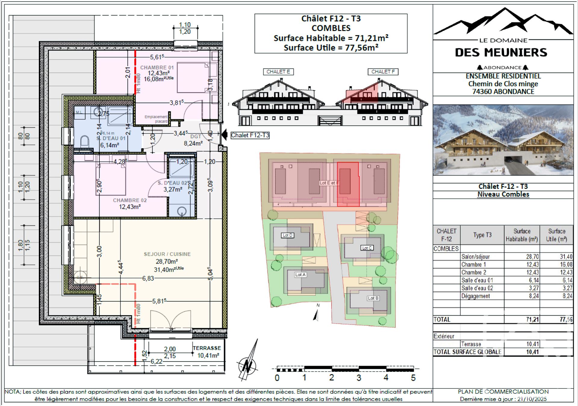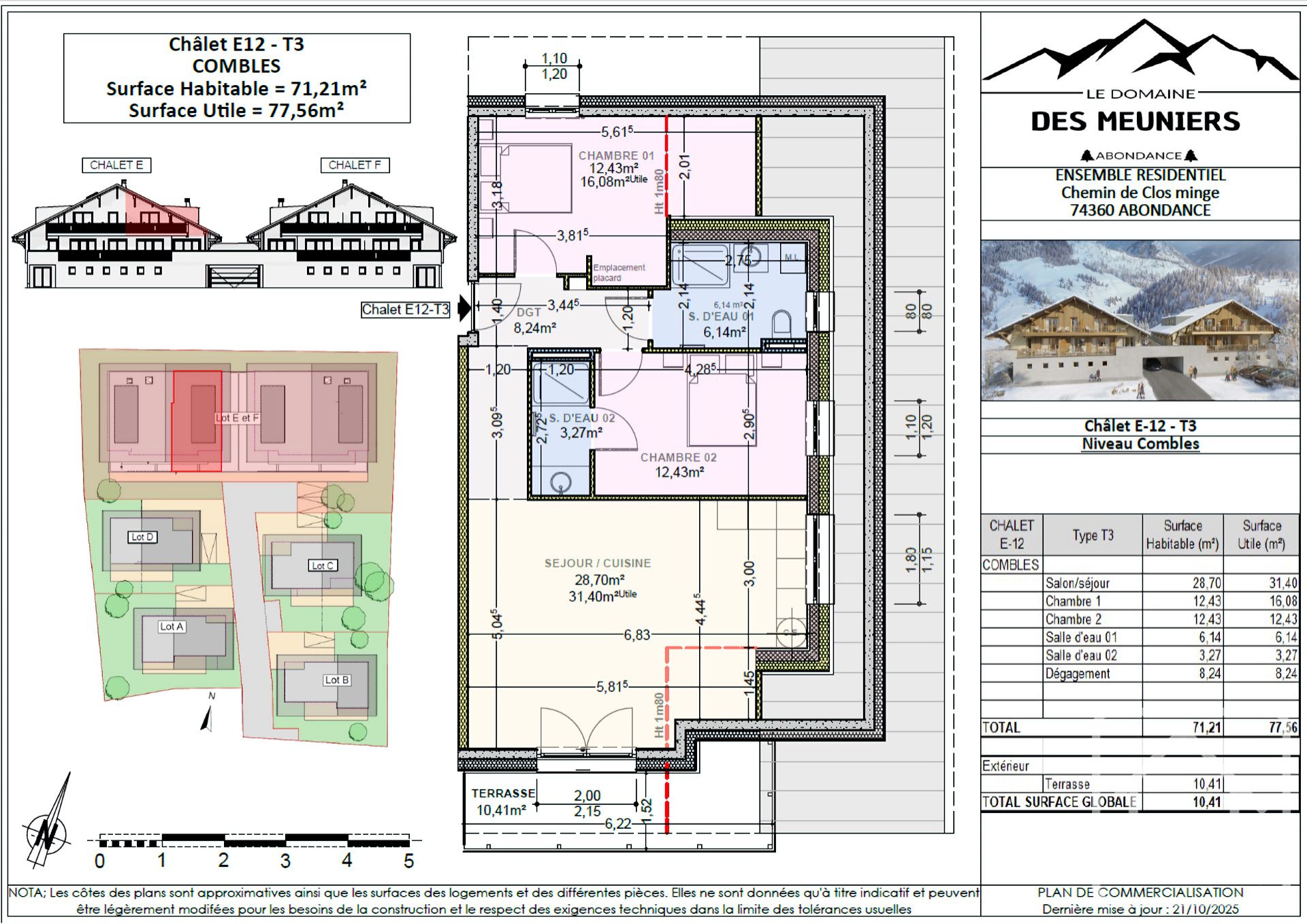 Appt E12 (attic apartment), 71.21 sq m habitable with a 10.41 sq m terrace, 465.000 € including parking space and cave.