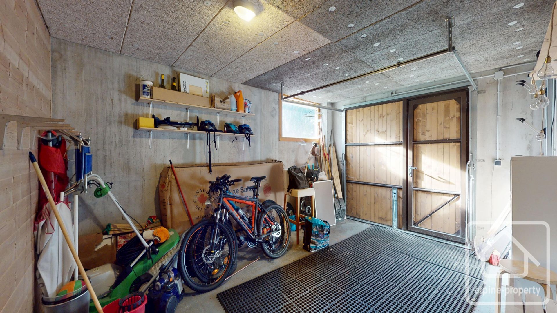 On the lower level, there is a bedroom with an en-suite bathroom, as well as a laundry room, a cave and a garage for one vehicle.