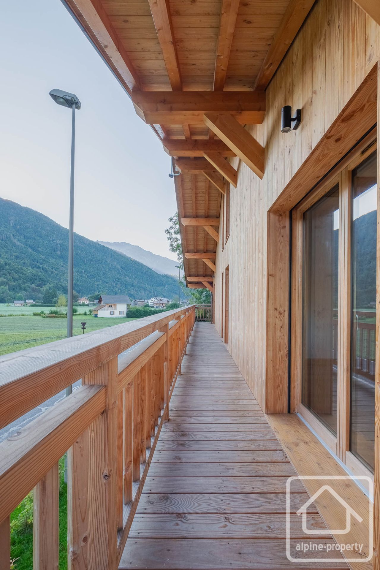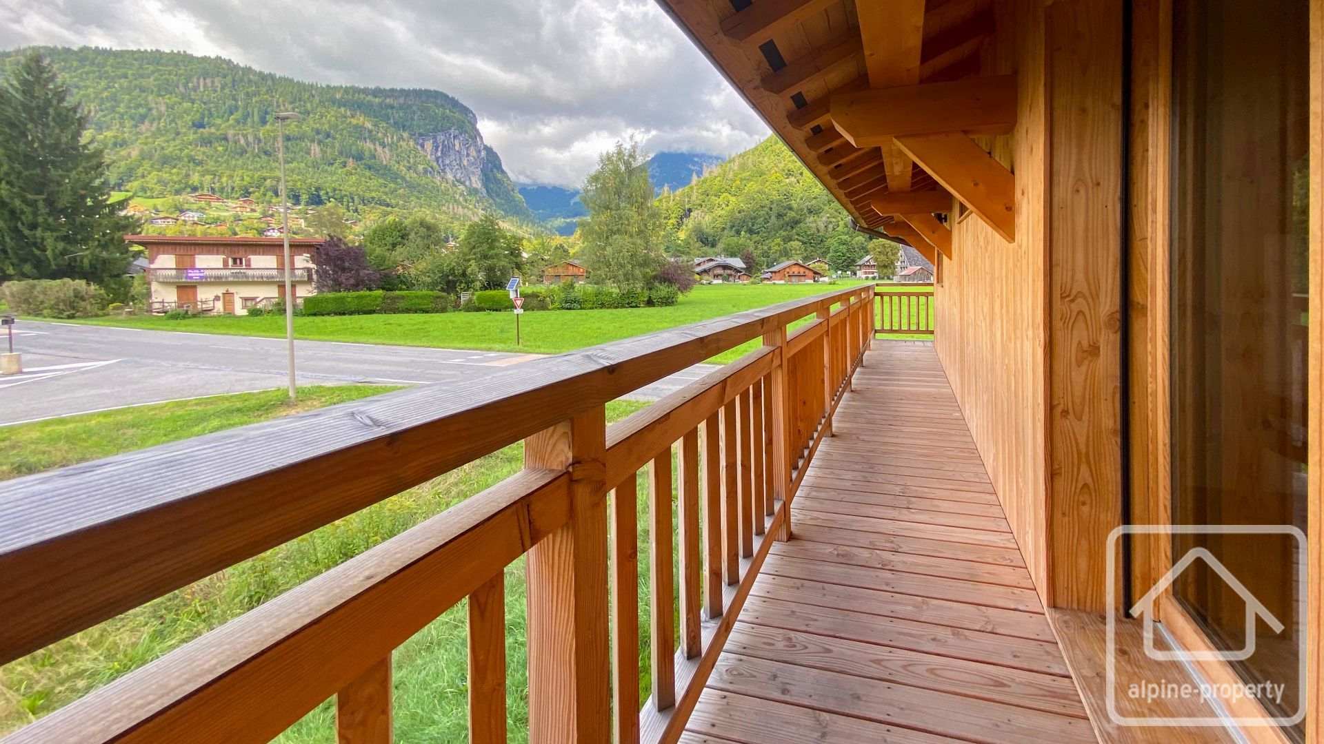 Outside, the chalet offers a large wooden terrace, a small flat garden to the east and north, and three parking spaces. For the sale, the owners will also complete a west-facing carport, providing covered parking and a secure lockable shed — ideal for skis, bikes, and other mountain equipment.